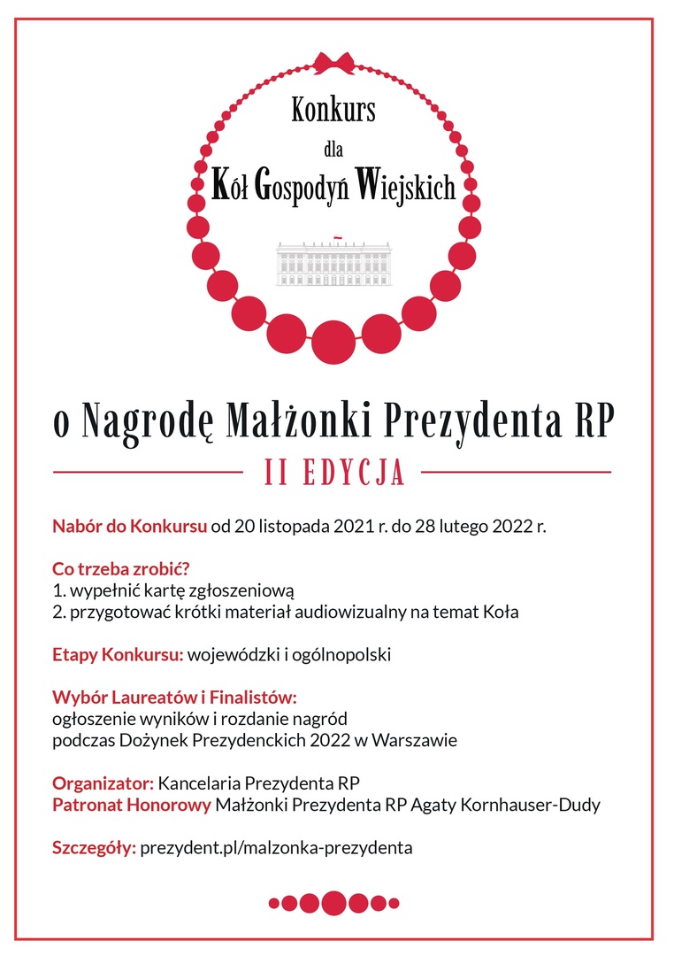 Konkurs dla Kół Gospodyń Wiejskich o Nagrodę Małżonki Prezydenta RP