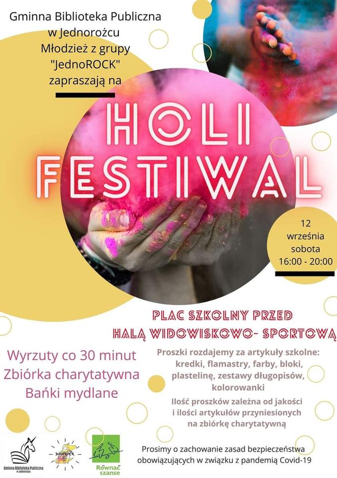 Zapamiętaj tę datę, zanotuj, uwzględnij w swoich planach bo NIE może Cię zabraknąć na pierwszym HOLI FESTIWALU W JEDNOROŻCU !!!! na placu przed Halą Sportowo- Widowiskową w Jednorożcu